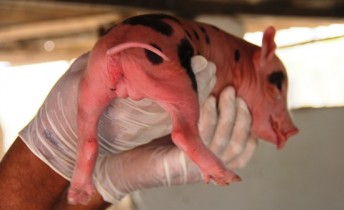 filhotes de uma só vez, quando o normal é apenas um, porcos com uma pata